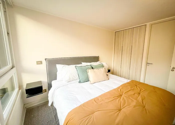 Este apartamento de 45 m², HOM I Luminoso Depto 2D2B en Nunoa 4PAX Parking Santiago de Chile, está situado a unos 10 minutos en coche del Barrio Providencia, y a 3 km del Estadio Nacional de Chile. Este apartamento dispone de una piscina, un centro de fitness y se encuentra a unos minutos a pie de Estacionamiento AUTOPLAZA.